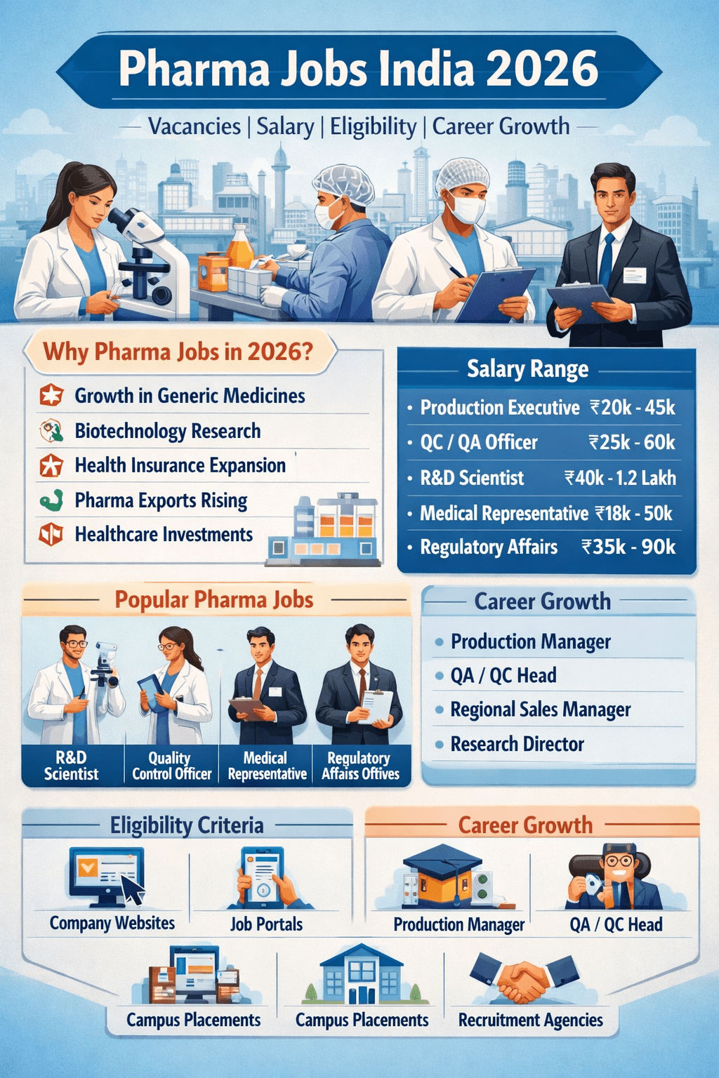 Pharma Jobs India 2026 offer strong career growth, good salaries, and long-term job security. With expanding healthcare infrastructure, rising insurance coverage, and increasing demand for medicines, the pharmaceutical industry remains one of the best career choices in India.